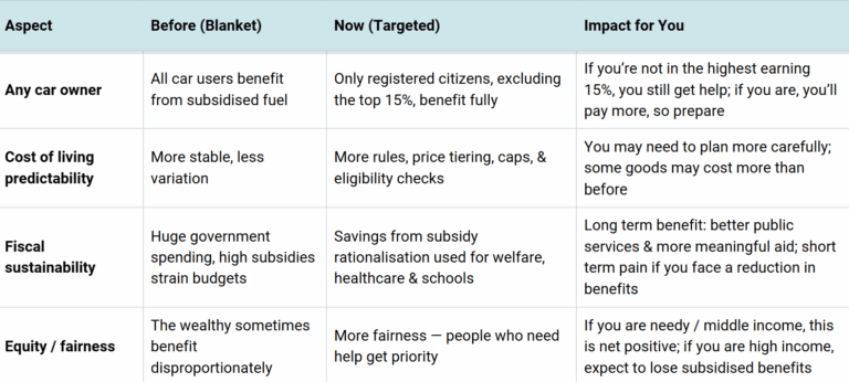 In my view, the move toward targeted subsidy is better, more sustainable, more fair, & more likely to benefit those truly in need. But it also comes with trade-offs. If your household used to absorb big benefits under blanket subsidies, you might feel squeezed. The key is knowing whether you’re in a group that loses or gains under the new model — then adjusting your finances accordingly.